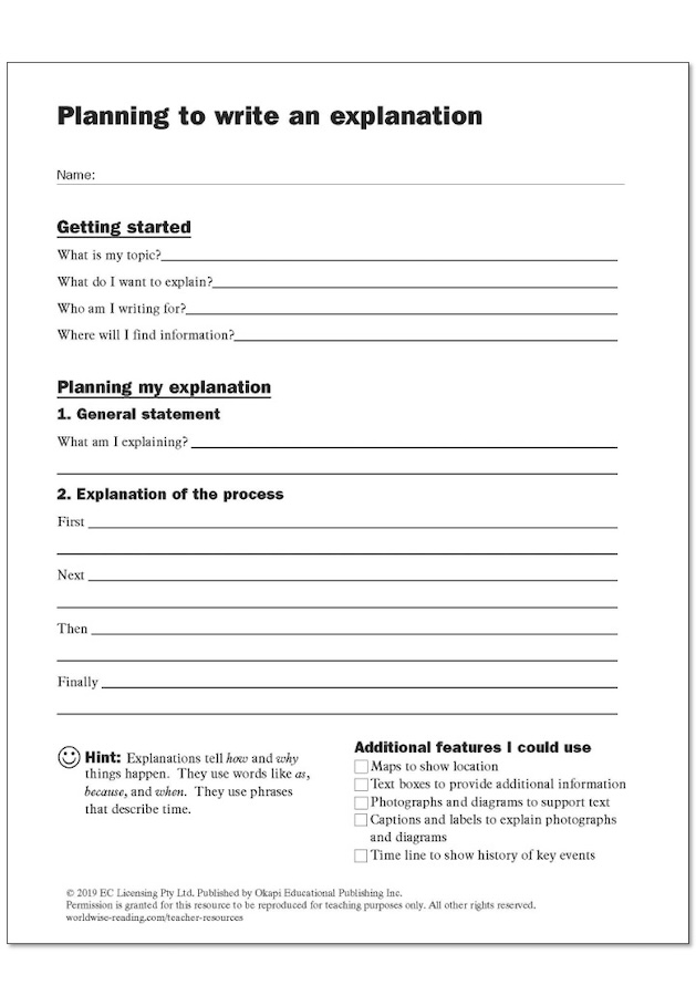Writing Templates are provided for each title. Simply print off the template to begin writing an explanation, argument, report or a recount.